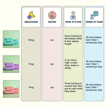 Each of our bodies respond differently to factors that effect our sleep. Choose the natural sleep aid that helps you wake up feeling your best. Whether its high-screen time, jetlag or dark circles, we've got you covered.