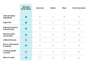 Morning Fresh sleep-aid is made with a mild mix of plant-based ingredients that help reset your sleep cycle, improve the quality of your sleep and help calm your mind before bed. Simply take 1 Morning Fresh sleep 30- mins before your desired bed-time and give your body the nourishment it needs to relax, unwind and prepare you for a night of restful sleep. Learn more on the science behind sleep here
