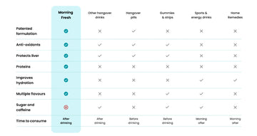 Our livers process and digest alcohol - but when we drink too quickly, our liver has to work overtime! Morning Fresh simply offers your liver a helping hand! It helps your liver process the alcohol and flushes the toxins out of your body faster! It also helps replenish your body with hydrating electrolytes, and helps with recovery. Learn more